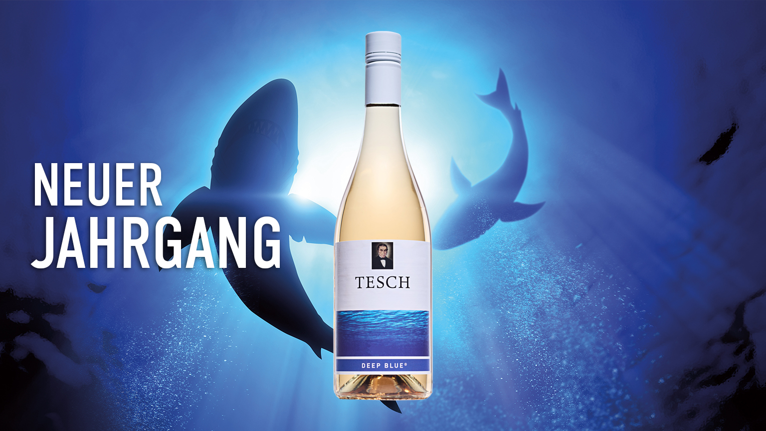 Der neue 2024er Jahrgang DEEP BLUE präsentiert sich erstmals in einer klaren Flasche. Der fast weiße Wein zeigt damit sichtbar seinen Vin-Gris-Charakter.