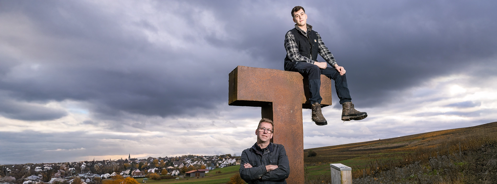 In unseren neuen Weinbergen steht ein markantes, stählernes „T“. Auf dem Etikett unserer Gutsweine findet es sich dezent wieder – als Symbol für eine neue Generation. Diese jungen Reben sind schon heute für die Herausforderungen von morgen gepflanzt: die fortschreitende, menschengemachte Klimaerwärmung. Mit ihren Auswirkungen auf den Weinbau beschäftigen wir uns seit über zehn Jahren intensiv.